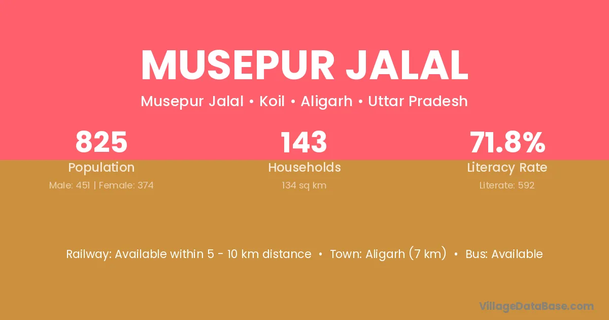 Aligarh (7 km) is the nearest town to Musepur Jalal village for major economic activities and is located approximately 7 km away.