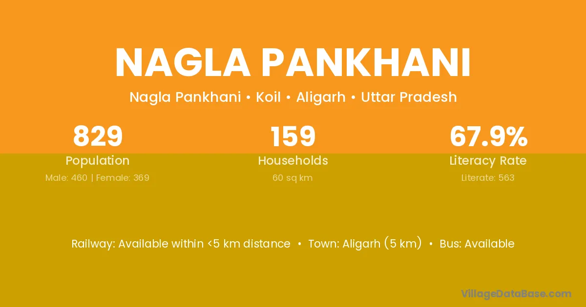 Aligarh (5 km) is the nearest town to Nagla Pankhani village for major economic activities and is located approximately 5 km away.