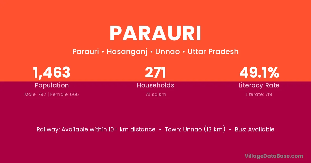 The literacy rate of Parauri village is 47.70%. Male literacy stands at 61.45% and female literacy at 31.52%.