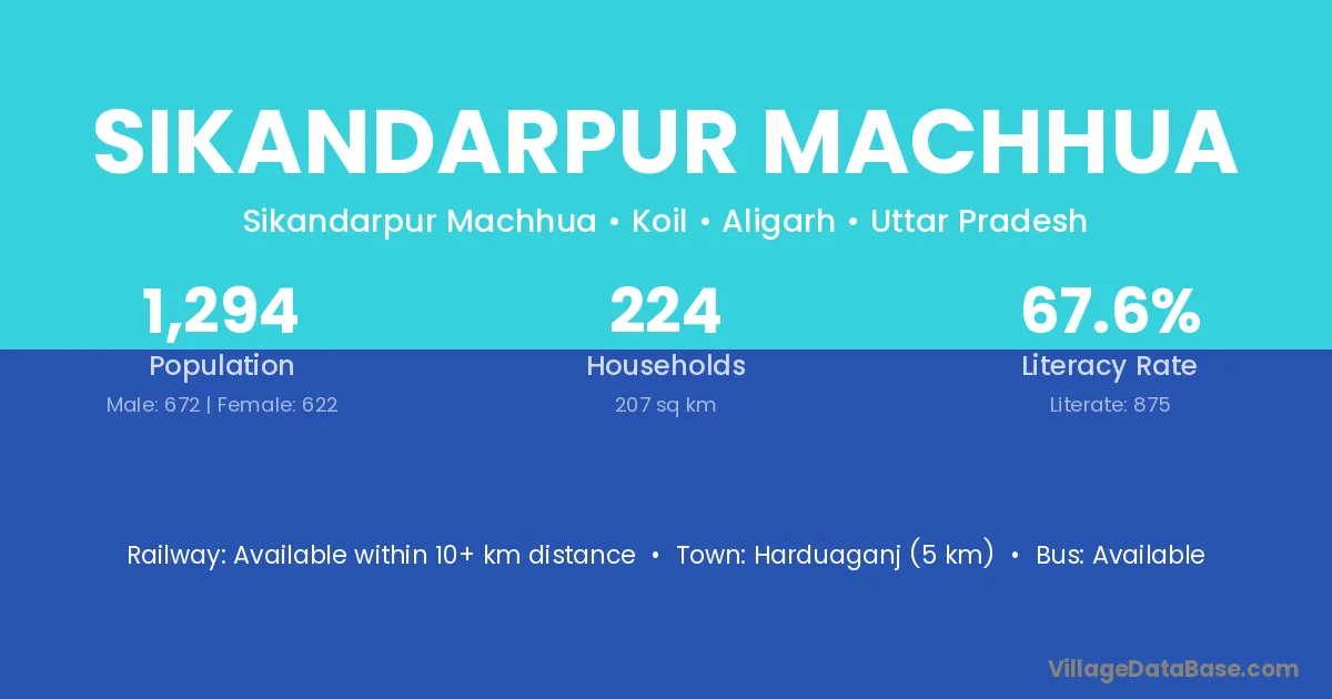 Harduaganj (5 km) is the nearest town to Sikandarpur Machhua village for major economic activities and is located approximately 5 km away.