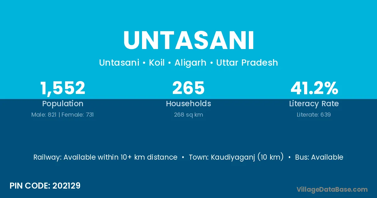 Kaudiyaganj (10 km) is the nearest town to Untasani village for major economic activities and is located approximately 10 km away.