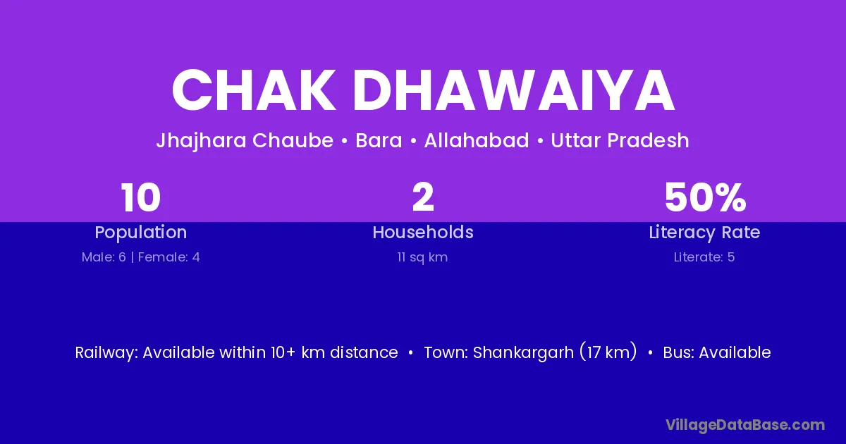 Chak Dhawaiya village has a total population of 10 people, of which 6 are males and 4 are females.