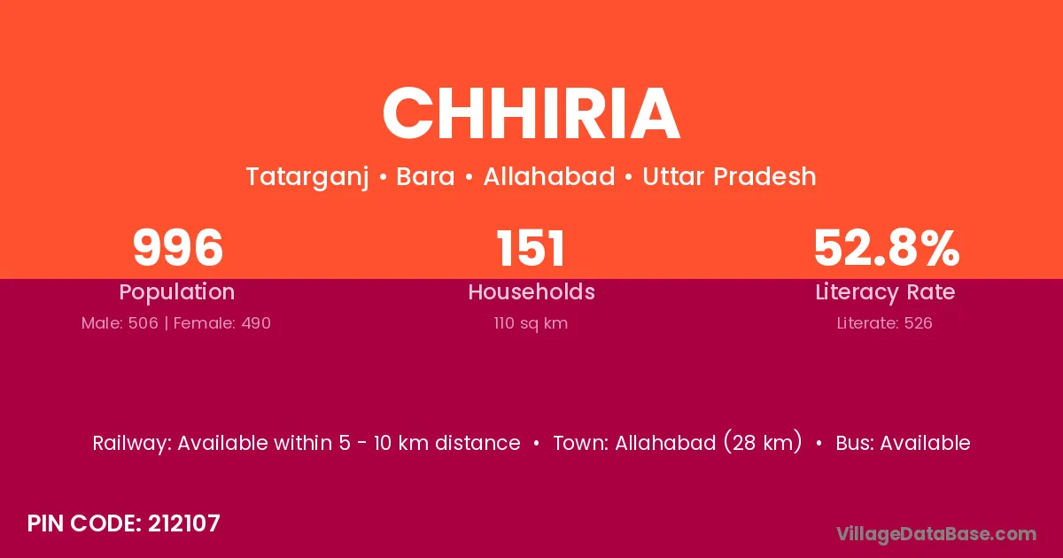 Allahabad (28 km) is the nearest town to Chhiria village for major economic activities and is located approximately 28 km away.