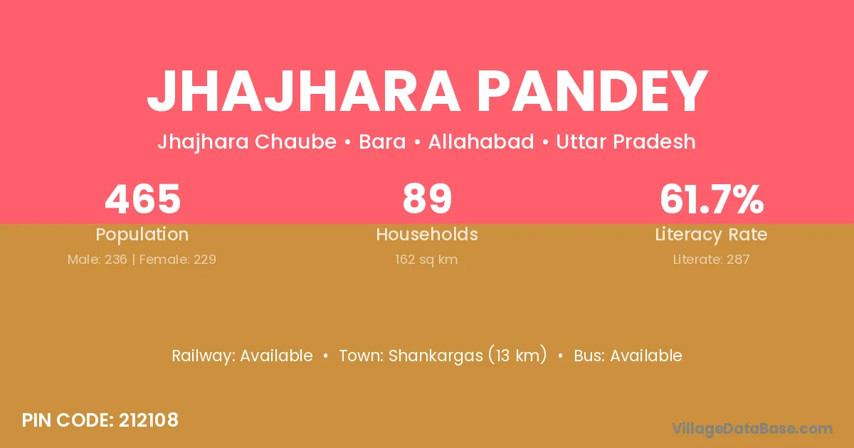 Jhajhara Pandey village has a total population of 465 people, of which 236 are males and 229 are females.