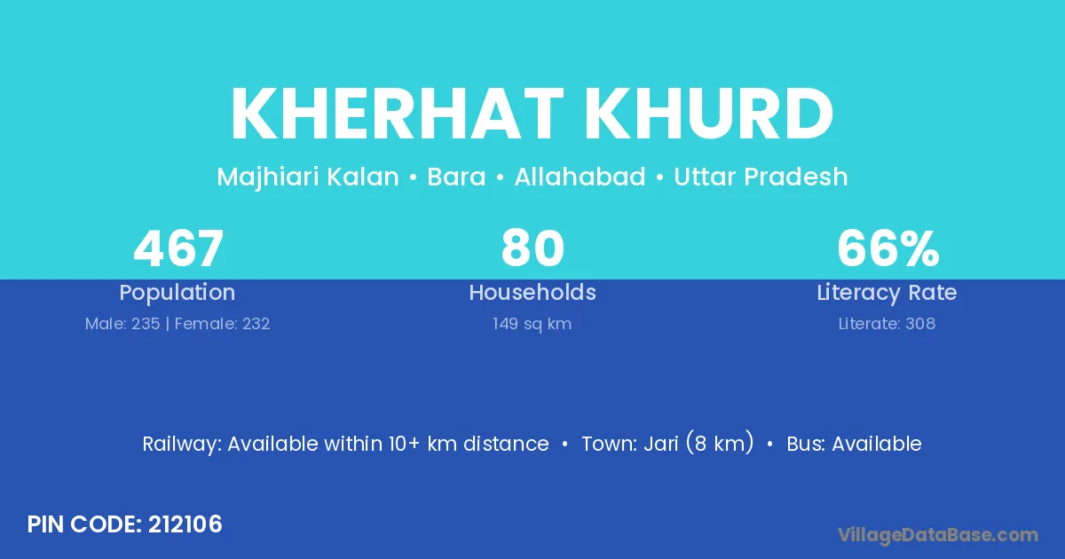 Kherhat Khurd village has a total population of 467 people, of which 235 are males and 232 are females.
