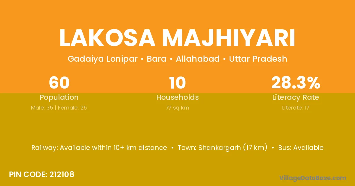 Lakosa Majhiyari village has a total population of 60 people, of which 35 are males and 25 are females.
