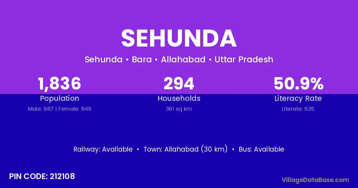 Allahabad (30 km) is the nearest town to Sehunda village for major economic activities and is located approximately 30 km away.