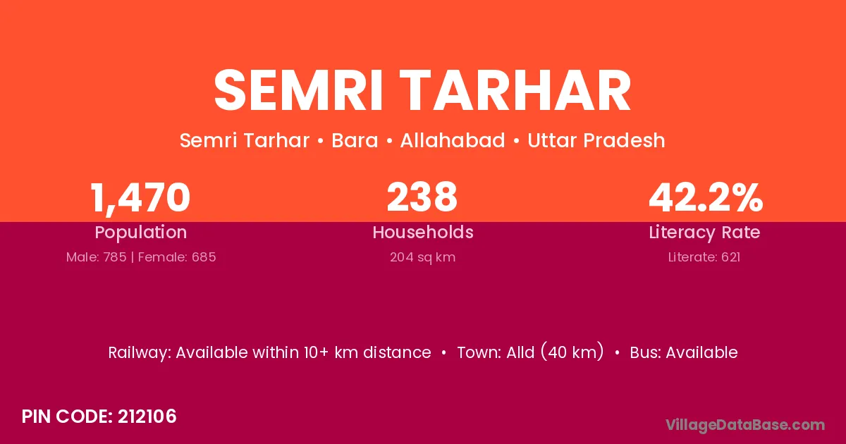 Alld (40 km) is the nearest town to Semri Tarhar village for major economic activities and is located approximately 40 km away.