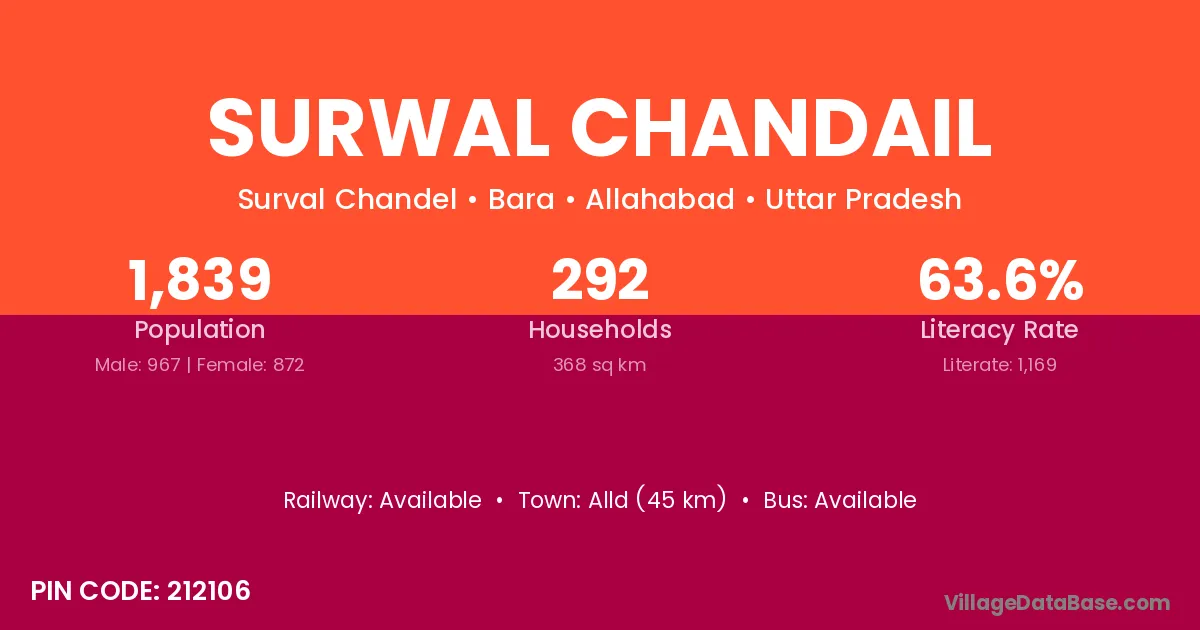 Surwal Chandail village has a total population of 1,839 people, of which 967 are males and 872 are females.