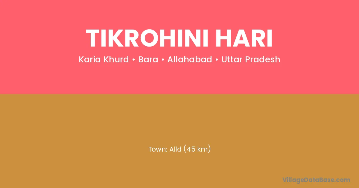 Alld (45 km) is the nearest town to Tikrohini Hari village for major economic activities and is located approximately 45 km away.