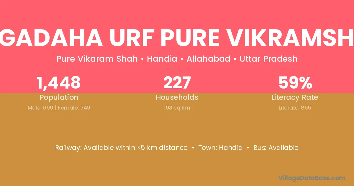 Bagadaha Urf Pure Vikramshah village is located in the Handia Tehsil of the Allahabad district in Uttar Pradesh .