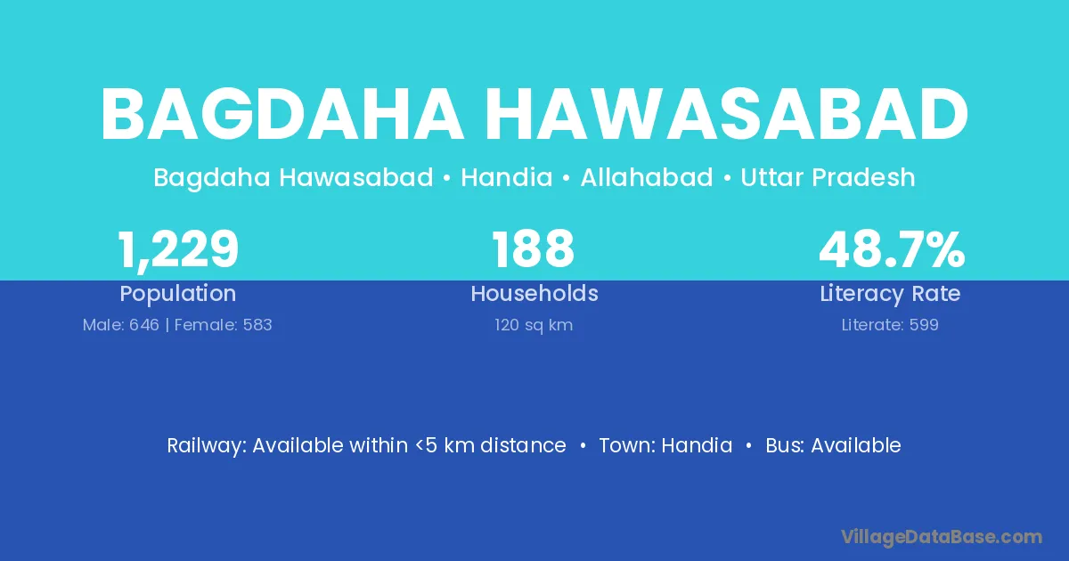 Bagdaha Hawasabad village has a total population of 1,229 people, of which 646 are males and 583 are females.