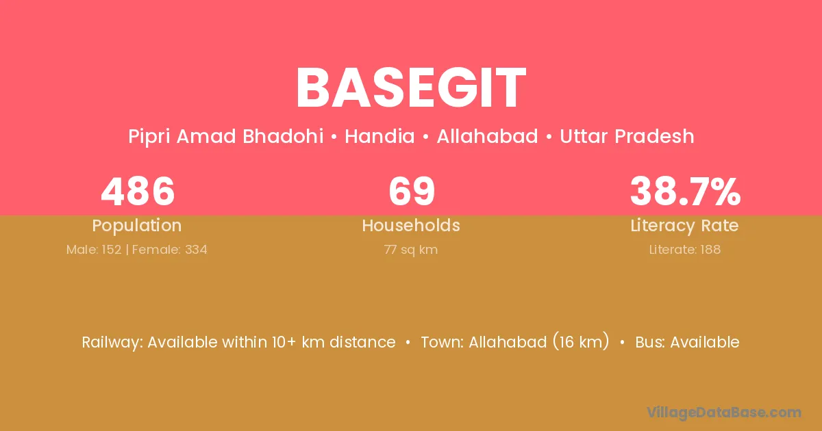 Allahabad (16 km) is the nearest town to Basegit village for major economic activities and is located approximately 16 km away.