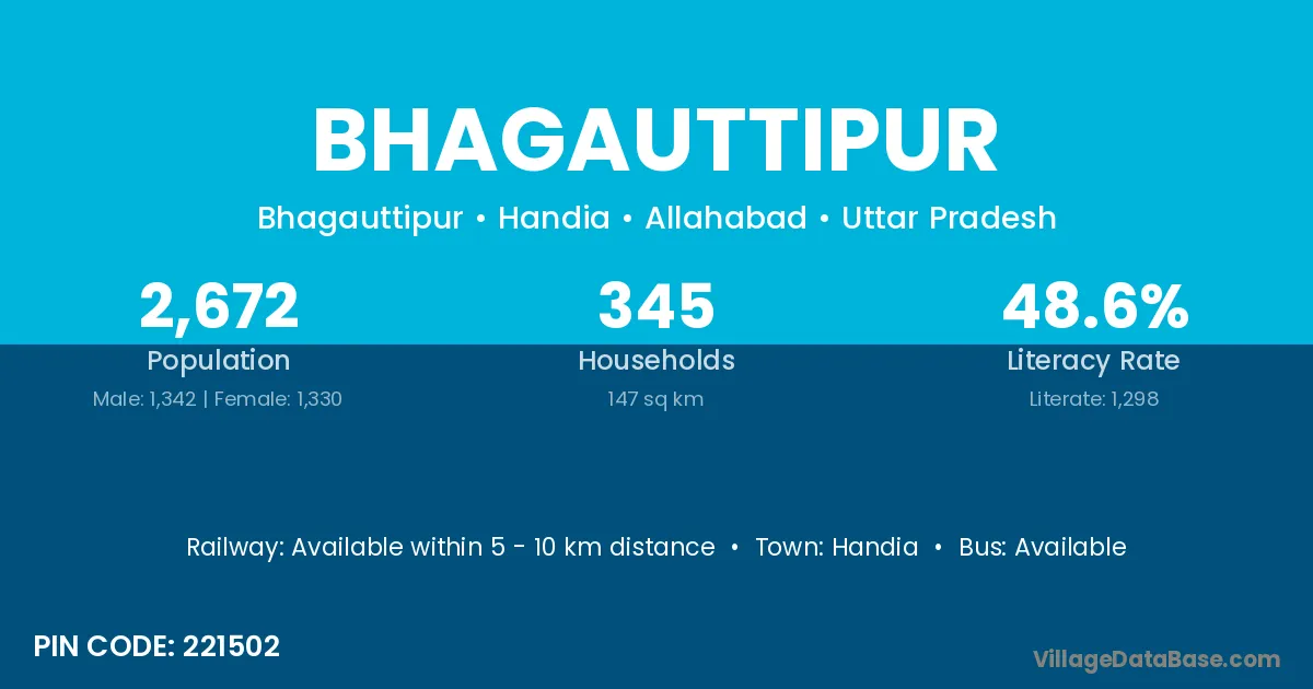 Bhagauttipur village has a total population of 2,672 people, of which 1,342 are males and 1,330 are females.