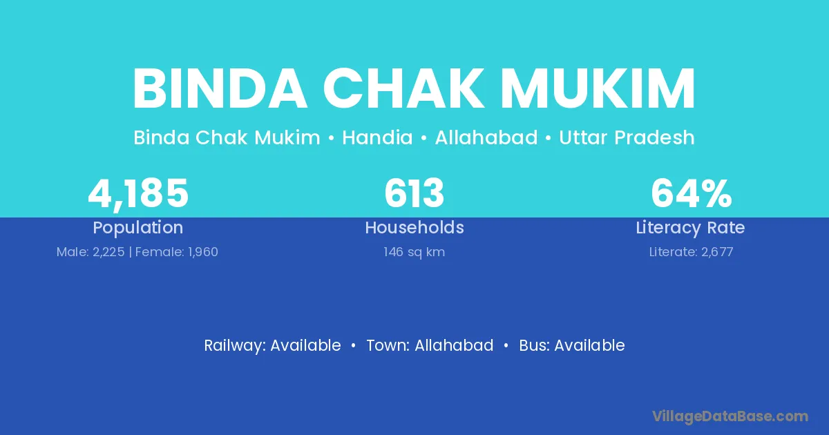 Allahabad is the nearest town to Binda Chak Mukim village for major economic activities