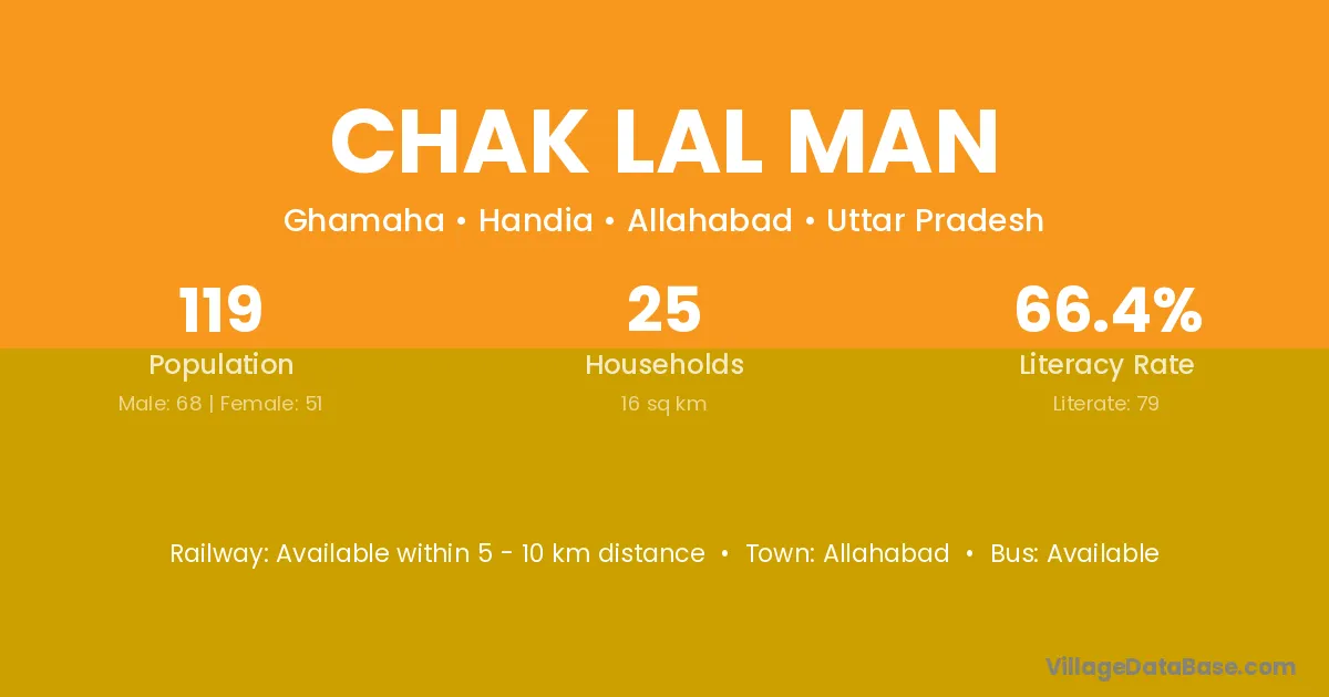 Allahabad is the nearest town to Chak Lal Man village for major economic activities