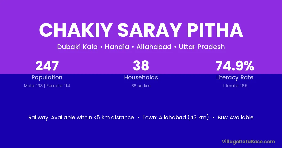 Allahabad (43 km) is the nearest town to Chakiy Saray Pitha village for major economic activities and is located approximately 43 km away.