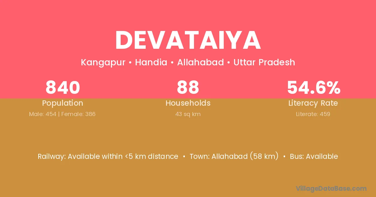 Allahabad (58 km) is the nearest town to Devataiya village for major economic activities and is located approximately 58 km away.