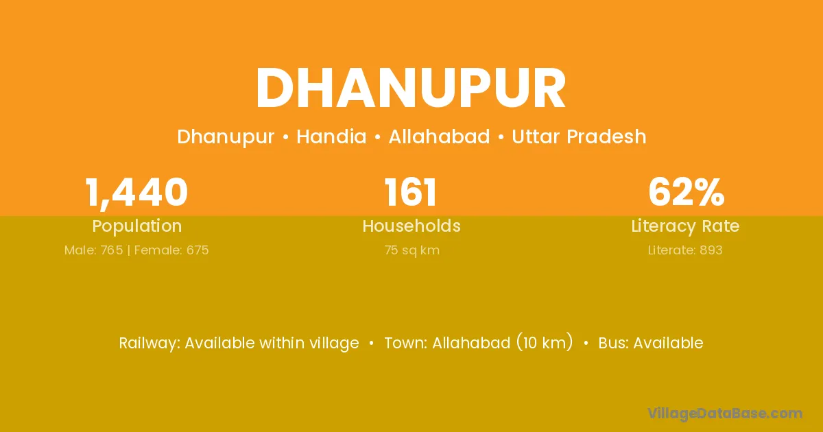 Allahabad (10 km) is the nearest town to Dhanupur village for major economic activities and is located approximately 10 km away.