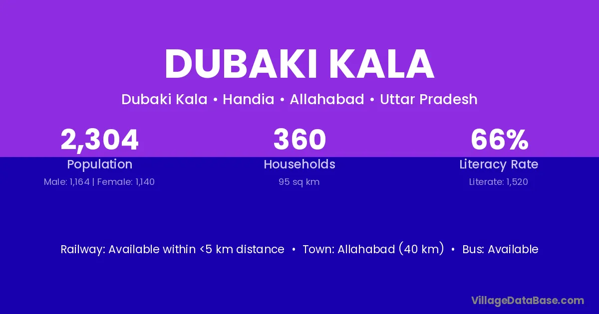 Allahabad (40 km) is the nearest town to Dubaki Kala village for major economic activities and is located approximately 40 km away.