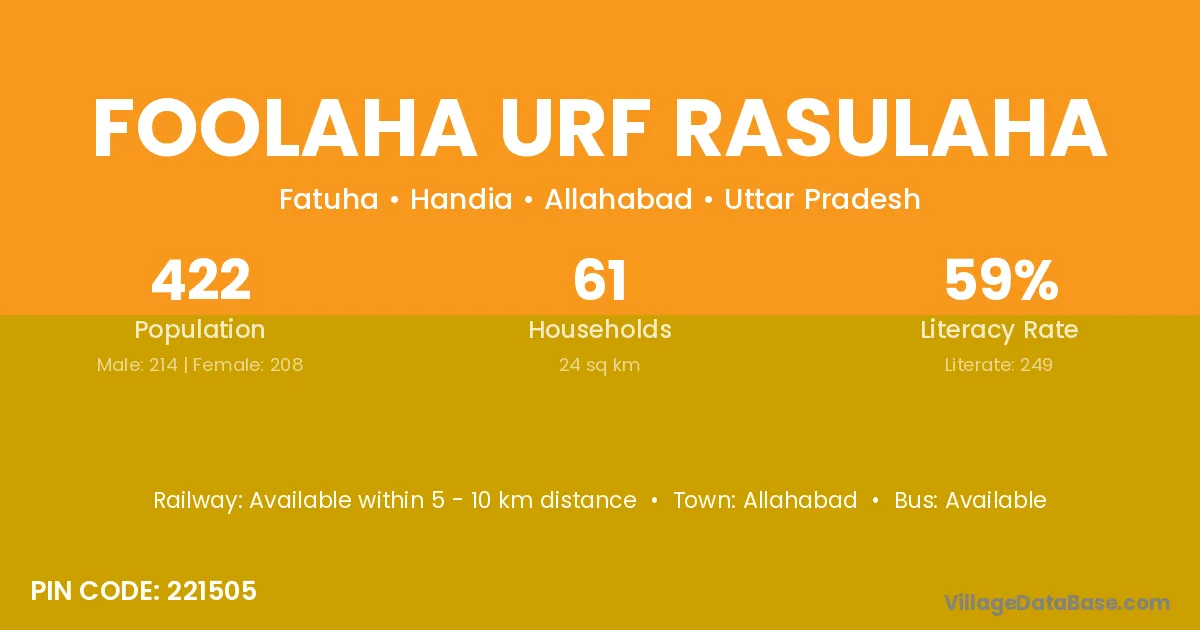 Foolaha Urf Rasulaha village has a total population of 422 people, of which 214 are males and 208 are females.