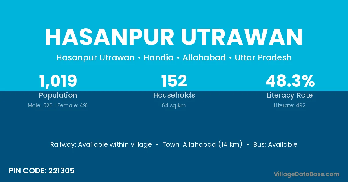 Allahabad (14 km) is the nearest town to Hasanpur Utrawan village for major economic activities and is located approximately 14 km away.