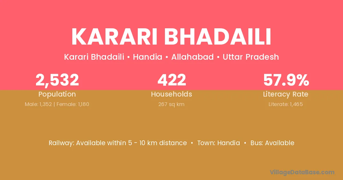 Handia is the nearest town to Karari Bhadaili village for major economic activities