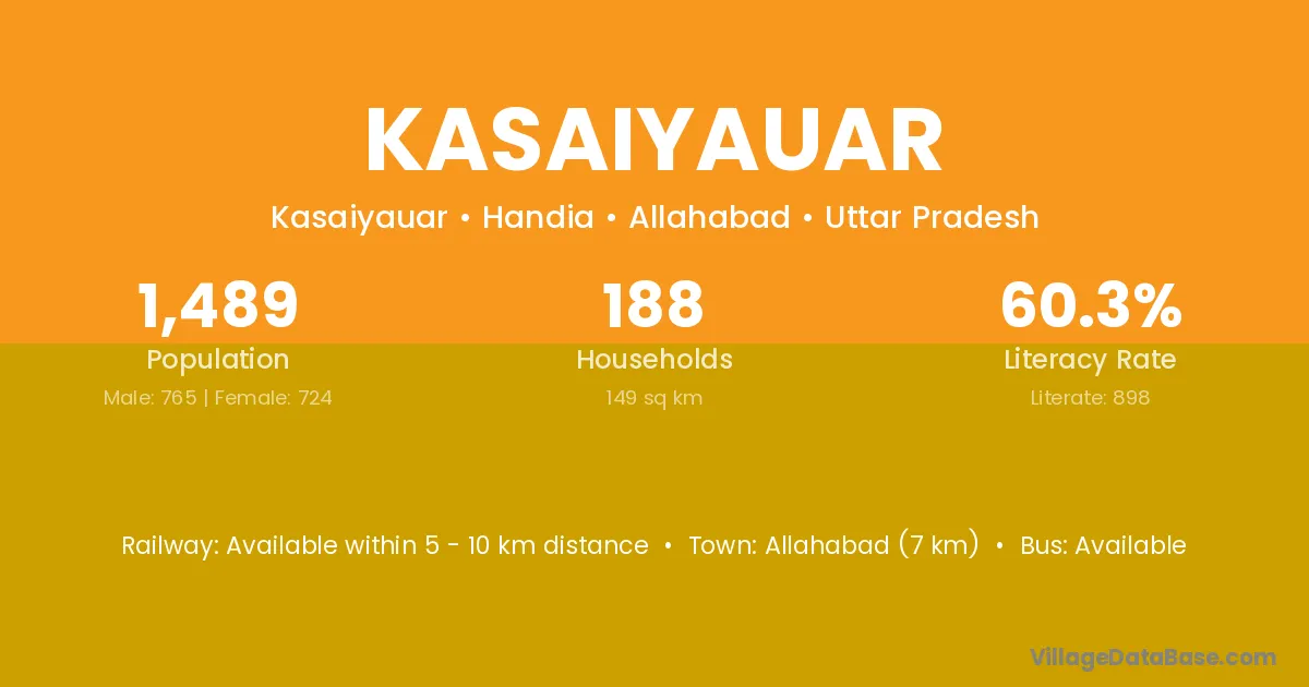 Allahabad (7 km) is the nearest town to Kasaiyauar village for major economic activities and is located approximately 7 km away.