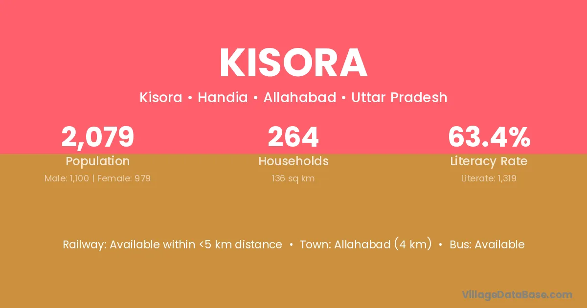 Allahabad (4 km) is the nearest town to Kisora village for major economic activities and is located approximately 4 km away.