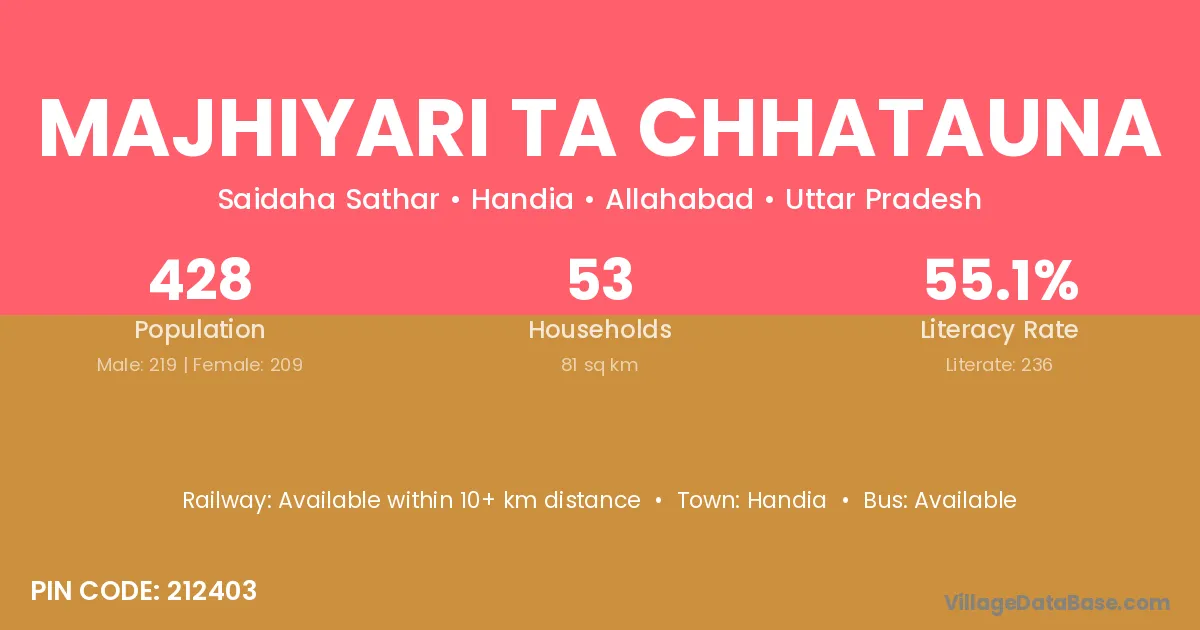 Majhiyari Ta Chhatauna village has a total population of 428 people, of which 219 are males and 209 are females.