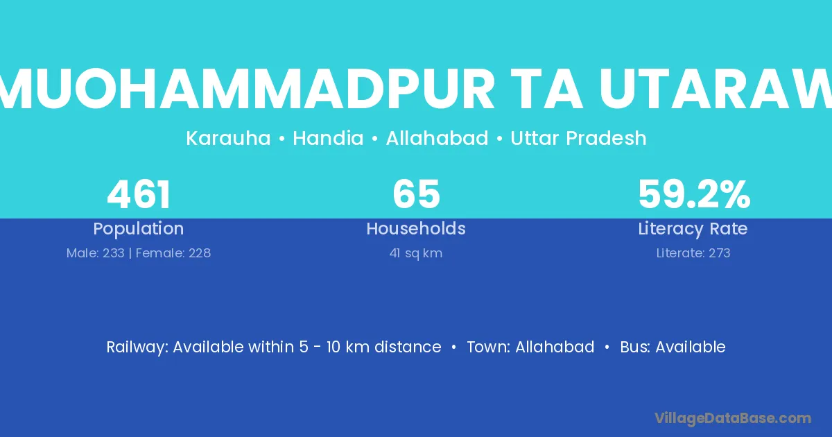 Allahabad is the nearest town to Muohammadpur Ta Utaraw village for major economic activities