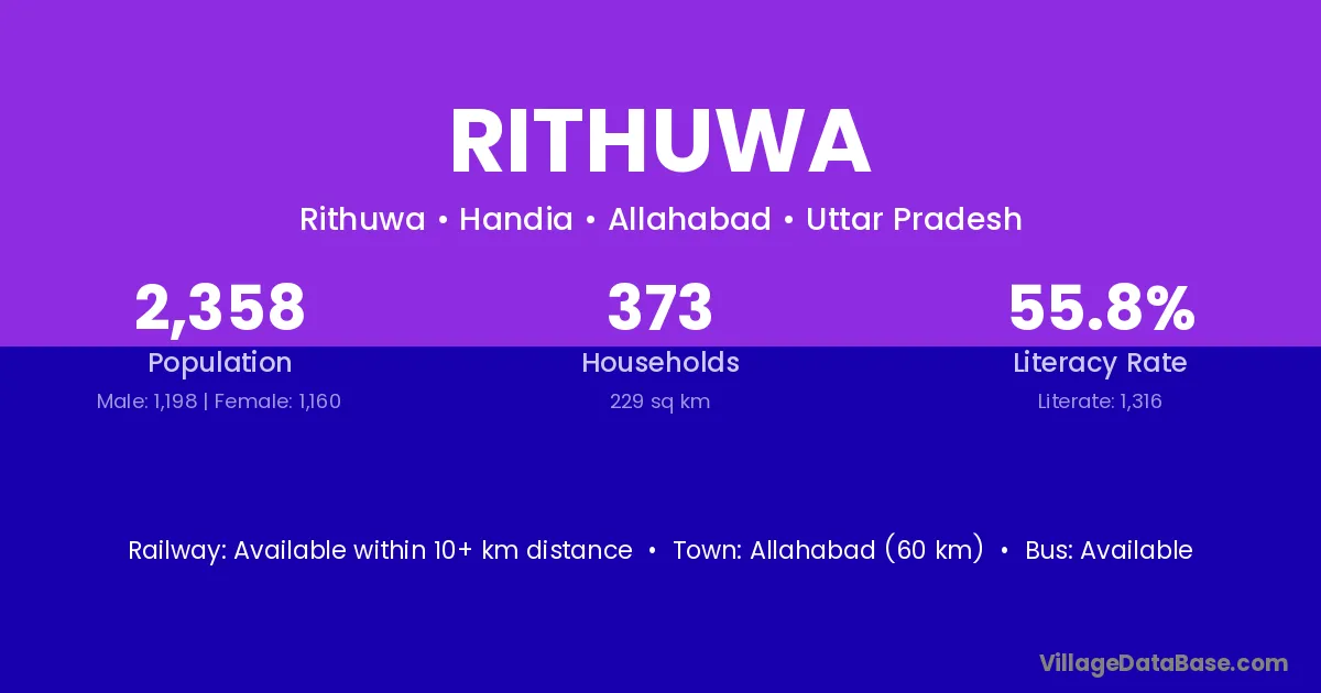 Allahabad (60 km) is the nearest town to Rithuwa village for major economic activities and is located approximately 60 km away.