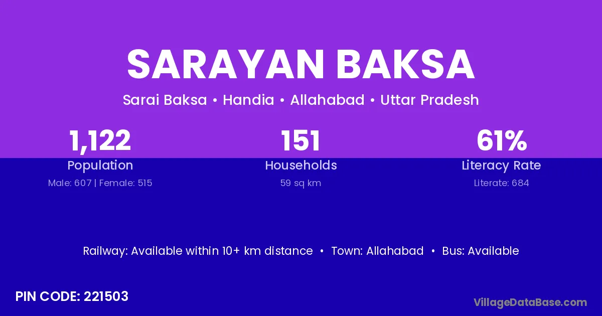 Allahabad is the nearest town to Sarayan Baksa village for major economic activities