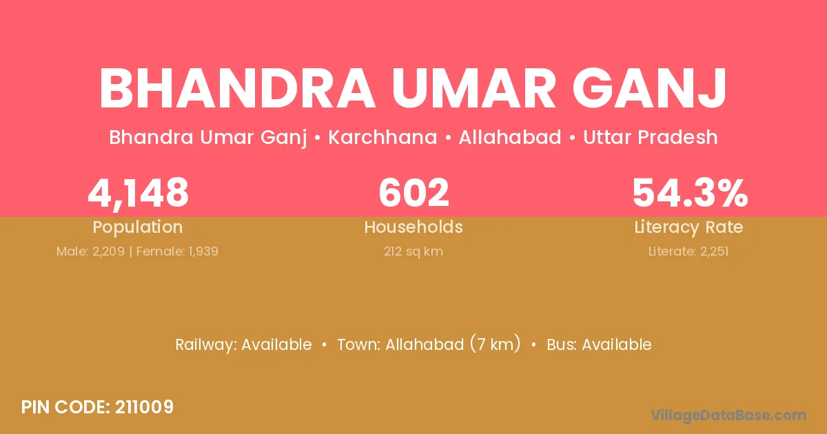 Allahabad (7 km) is the nearest town to Bhandra Umar Ganj village for major economic activities and is located approximately 7 km away.