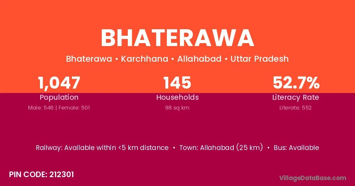 Allahabad (25 km) is the nearest town to Bhaterawa village for major economic activities and is located approximately 25 km away.