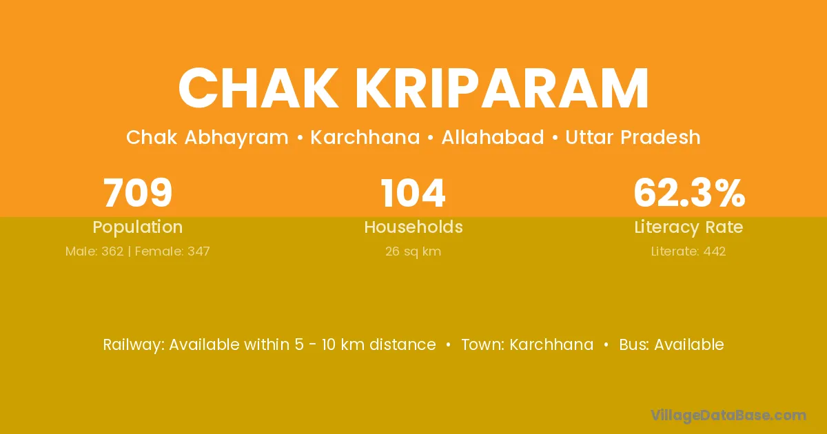 Karchhana is the nearest town to Chak Kriparam village for major economic activities
