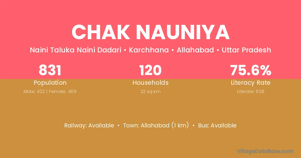Allahabad (1 km) is the nearest town to Chak Nauniya village for major economic activities and is located approximately 1 km away.