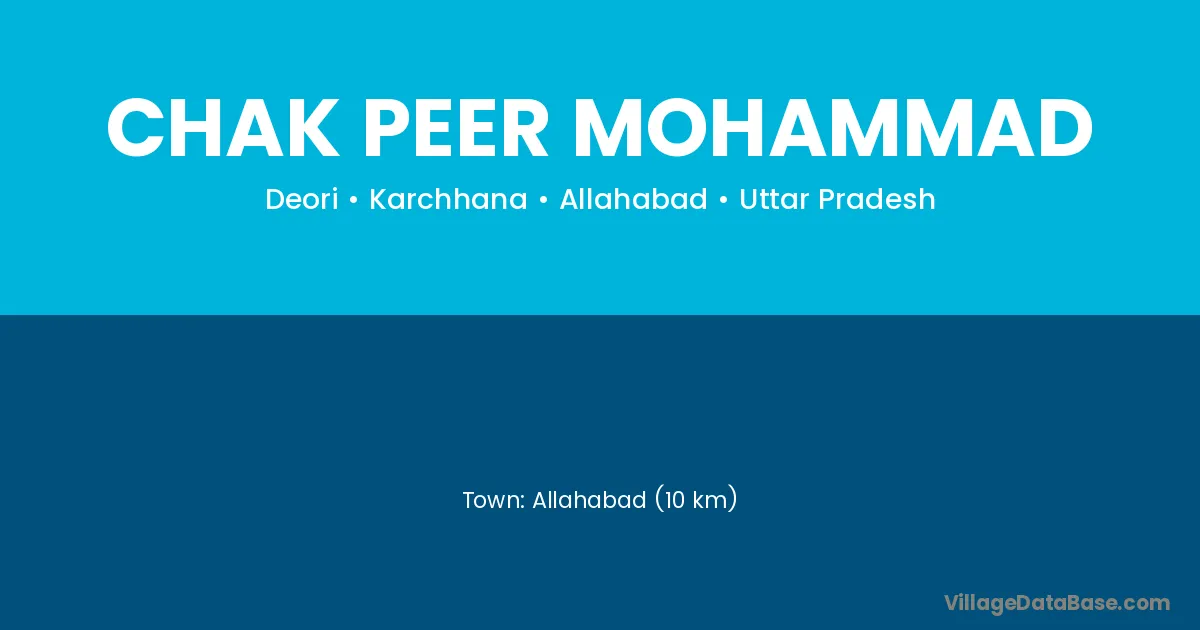 Allahabad (10 km) is the nearest town to Chak Peer Mohammad village for major economic activities and is located approximately 10 km away.