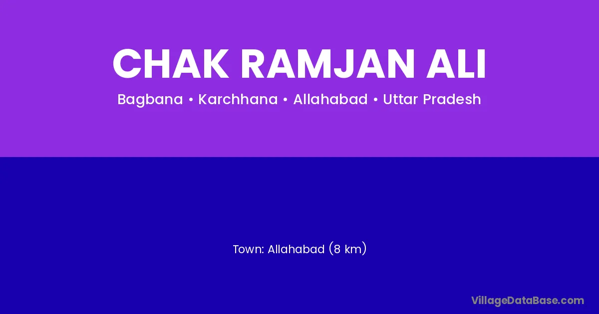Allahabad (8 km) is the nearest town to Chak Ramjan Ali village for major economic activities and is located approximately 8 km away.