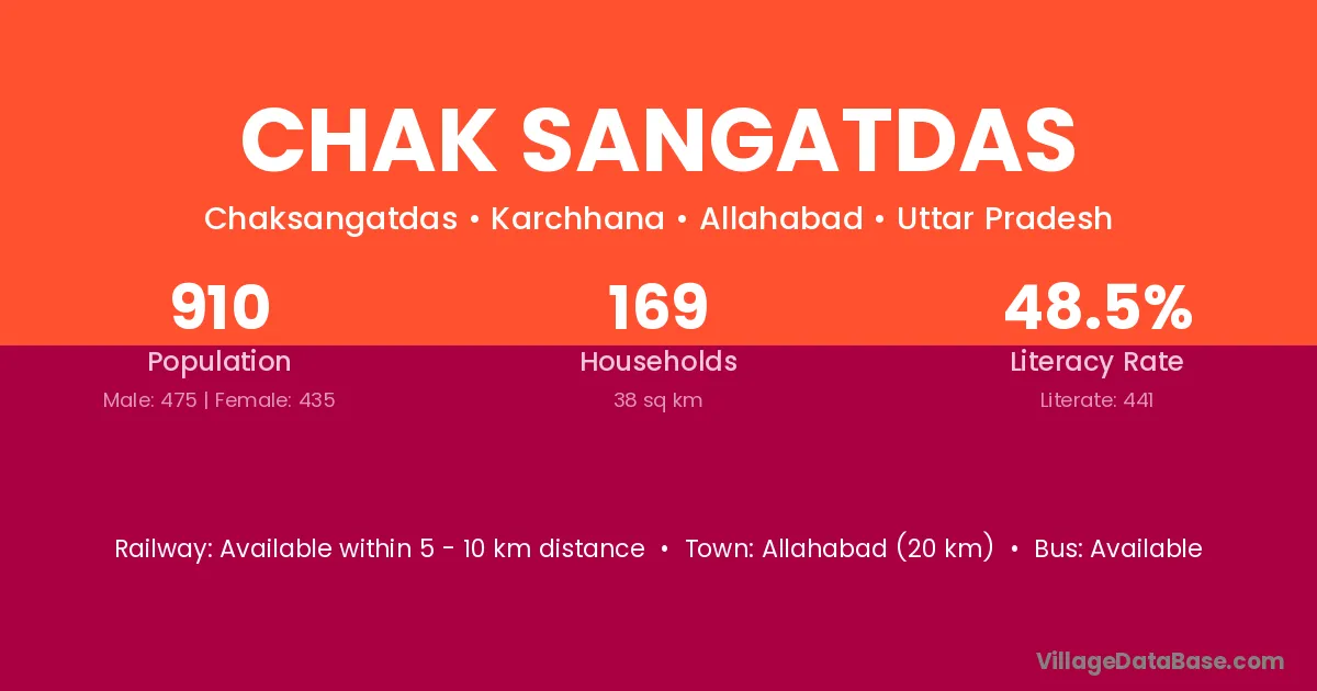 Allahabad (20 km) is the nearest town to Chak Sangatdas village for major economic activities and is located approximately 20 km away.