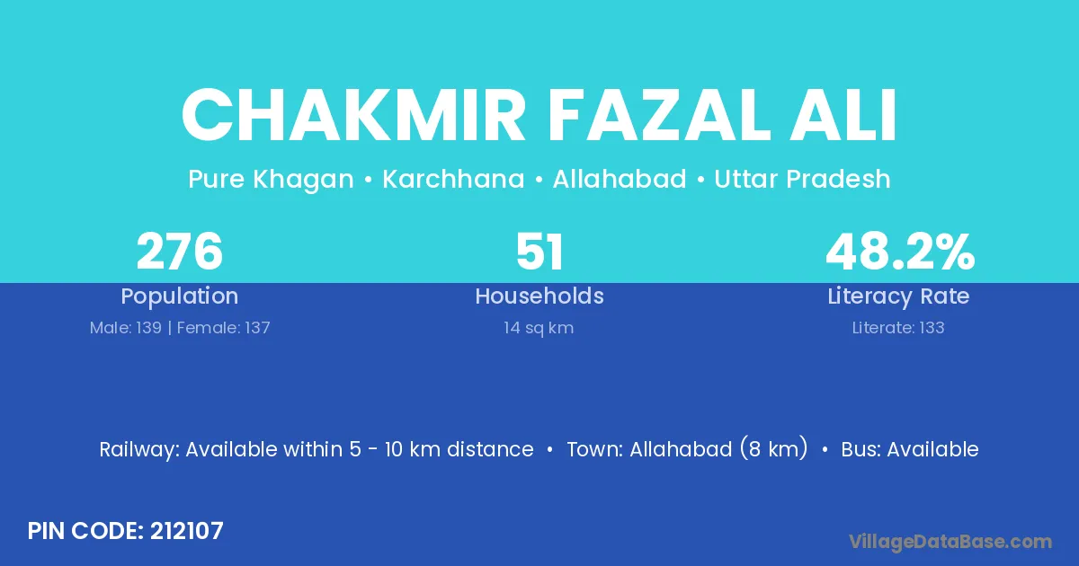 Allahabad (8 km) is the nearest town to Chakmir Fazal Ali village for major economic activities and is located approximately 8 km away.