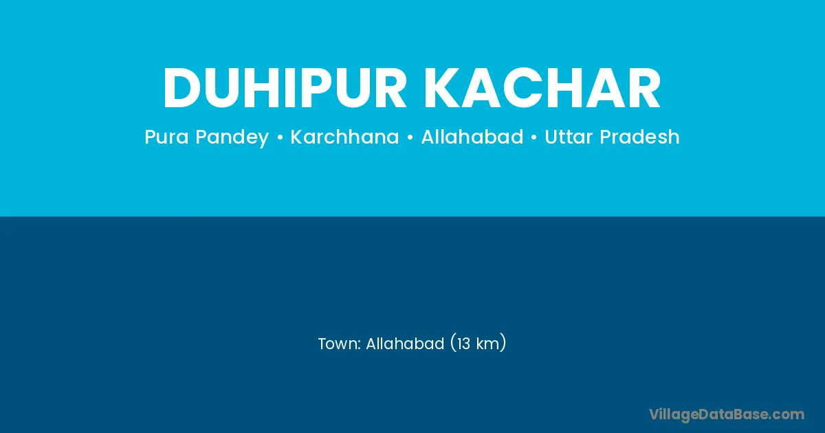Allahabad (13 km) is the nearest town to Duhipur Kachar village for major economic activities and is located approximately 13 km away.