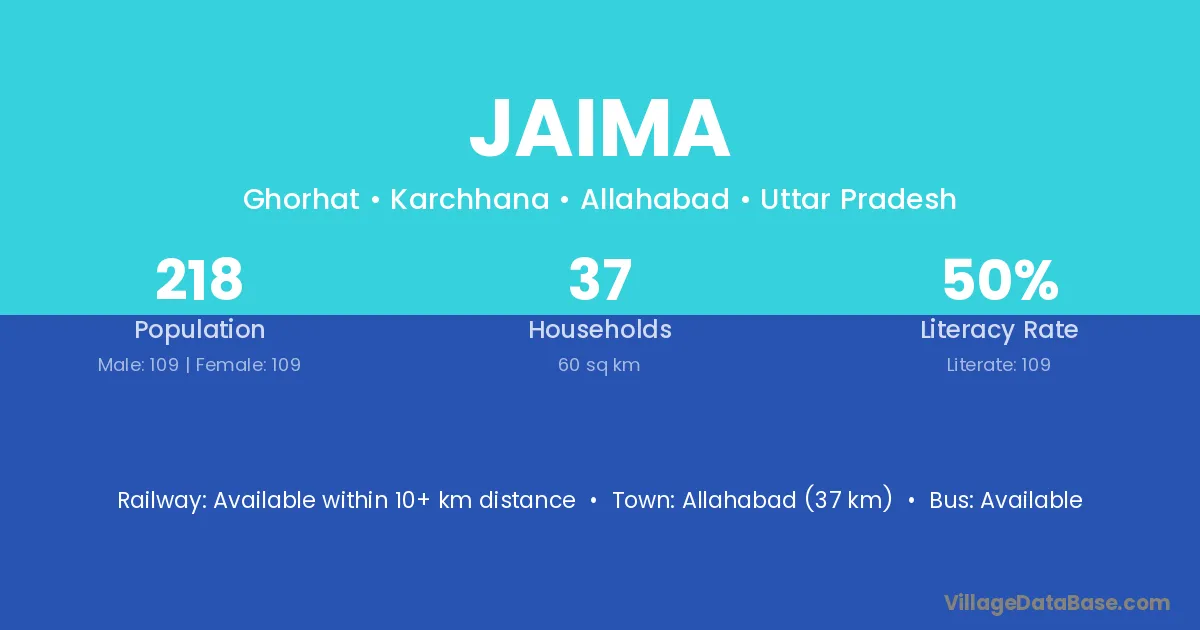 Allahabad (37 km) is the nearest town to Jaima village for major economic activities and is located approximately 37 km away.