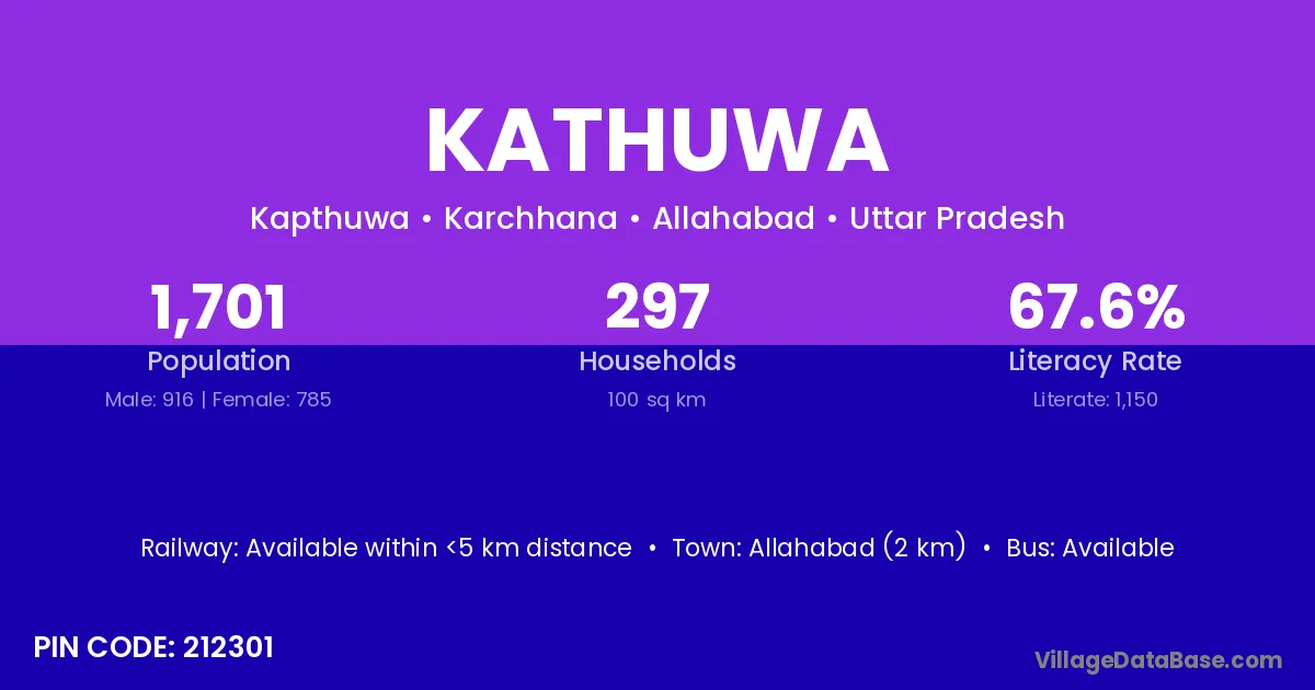 Allahabad (2 km) is the nearest town to Kathuwa village for major economic activities and is located approximately 2 km away.