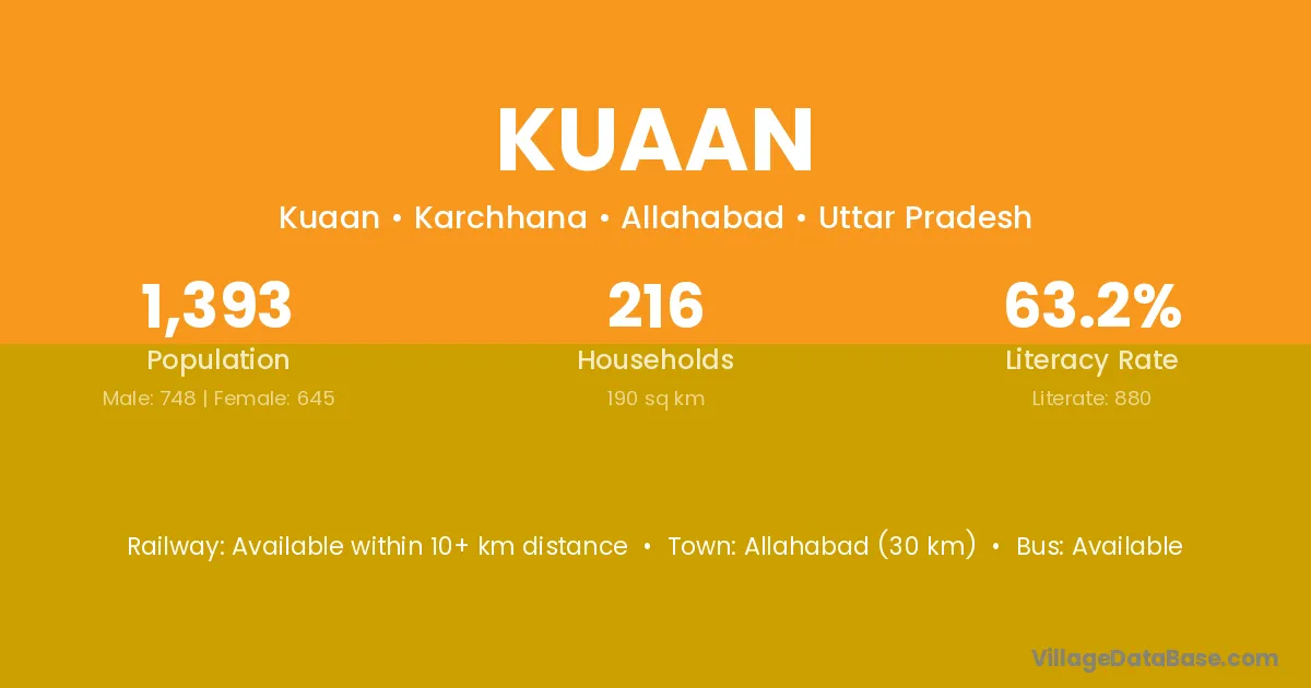 Allahabad (30 km) is the nearest town to Kuaan village for major economic activities and is located approximately 30 km away.