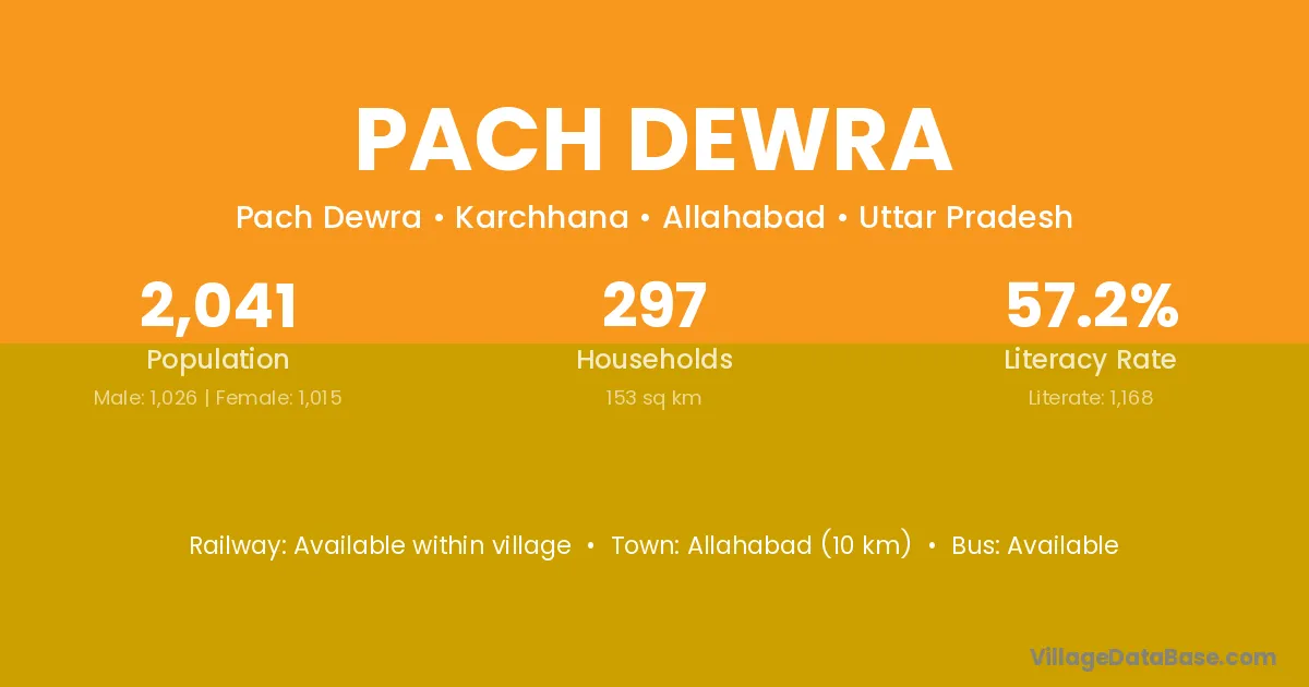 Allahabad (10 km) is the nearest town to Pach Dewra village for major economic activities and is located approximately 10 km away.