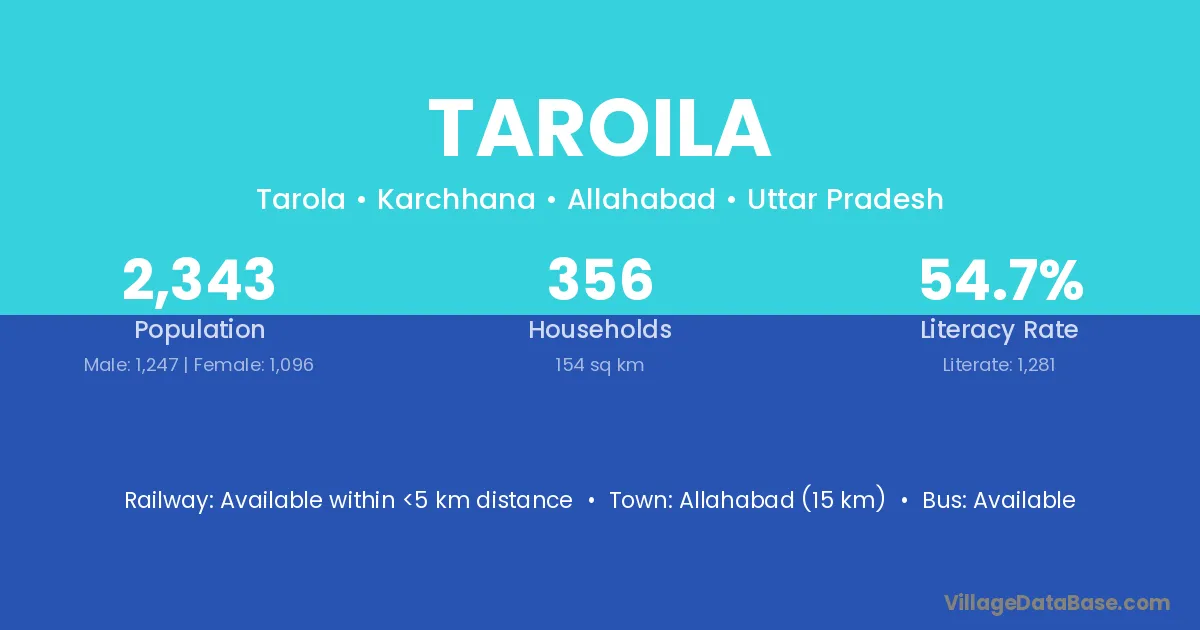 Allahabad (15 km) is the nearest town to Taroila village for major economic activities and is located approximately 15 km away.