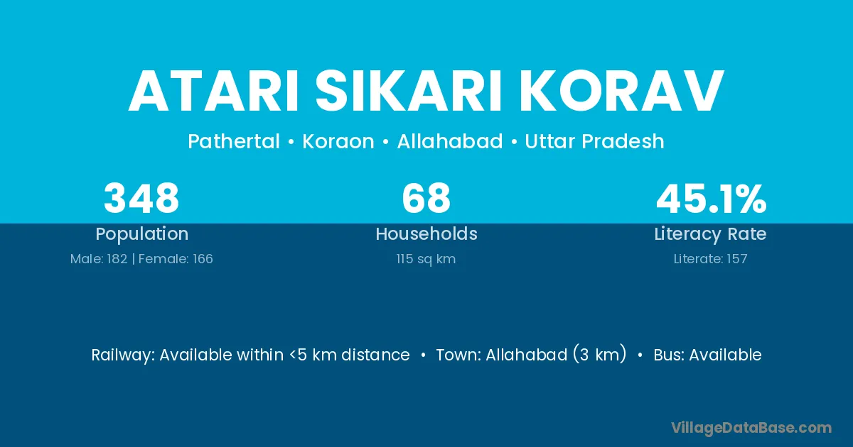 Allahabad (3 km) is the nearest town to Atari Sikari Korav village for major economic activities and is located approximately 3 km away.