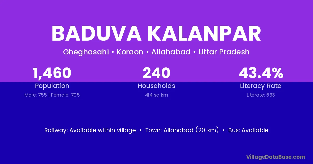 Allahabad (20 km) is the nearest town to Baduva Kalanpar village for major economic activities and is located approximately 20 km away.