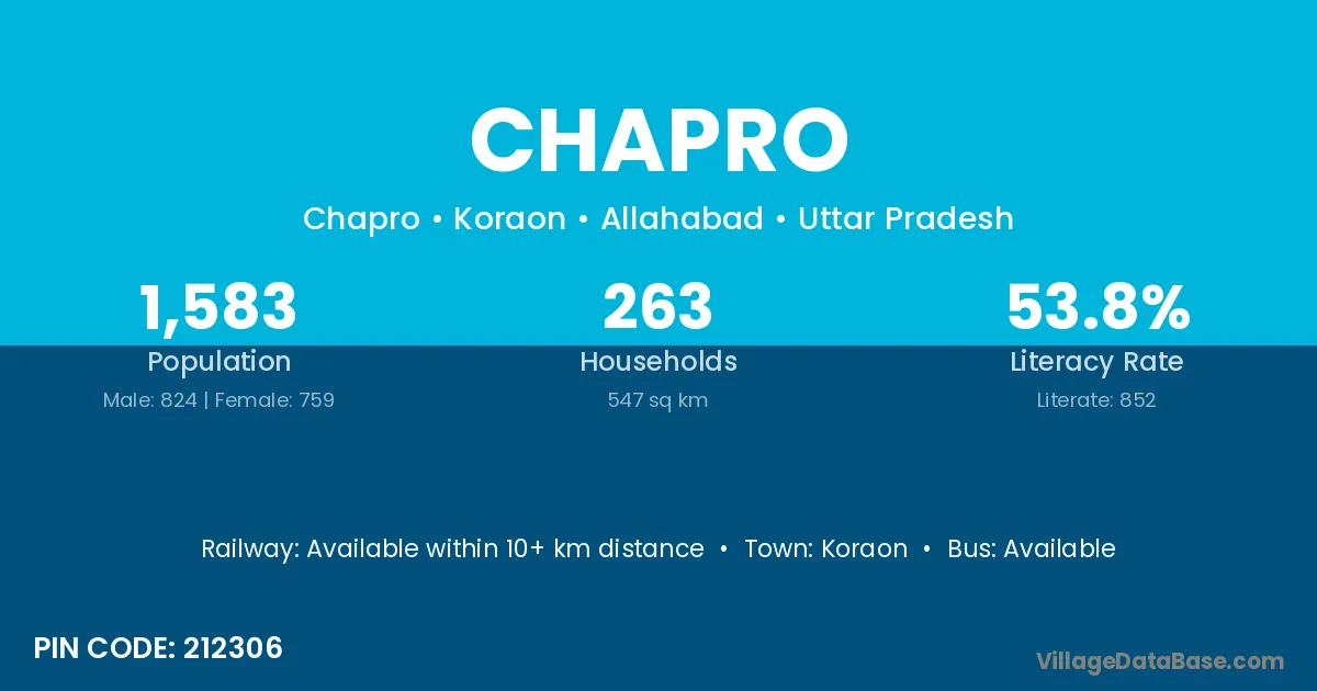 Chapro village is located in the Koraon Tehsil of the Allahabad district in Uttar Pradesh .
